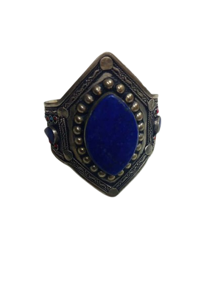 - A luxurious assortment of collectible and rare, ethnic,tribal arm bands. Afghan silver engraved silver wristbands . Real silver is liked as a metal of humility. Best, exceptional ,handcrafted wristbands. Slick, delightful, customary ancestral, pounded surface and long cuff wrist bands for ladies. Blue stones makes it more appealing. Bright adornments joins new,old,metal,beads,coins,stones and texture. Treasure Pakistan provides you with various plans of metal sleeve popular things for party and extraordinary occasions.Please note: These products are handmade and/or naturally produced. Some variance in pattern placement, minor size variation and colour variations may occur and may look slightly different from the photo’s.