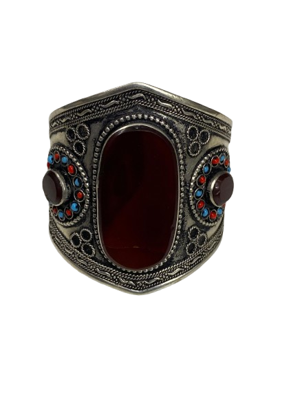 - A luxurious assortment of collectible and rare, ethnic,tribal arm bands. Afghan silver engraved silver wristbands . Real silver is liked as a metal of humility. Best, exceptional ,handcrafted wristbands. Slick, delightful, customary ancestral, pounded surface and long cuff wrist bands for ladies. Blue stones makes it more appealing. Bright adornments joins new,old,metal,beads,coins,stones and texture. Treasure Pakistan provides you with various plans of metal sleeve popular things for party and extraordinary occasions.Please note: These products are handmade and/or naturally produced. Some variance in pattern placement, minor size variation and colour variations may occur and may look slightly different from the photo’s.