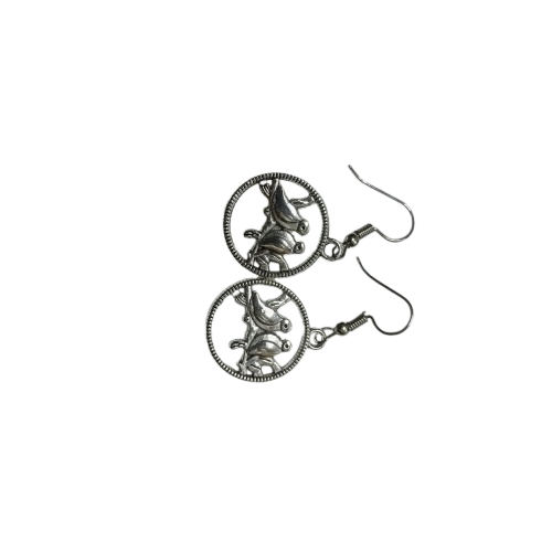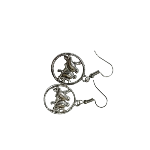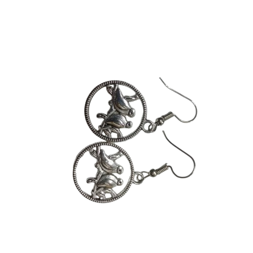 Elegant silver tone earrings featuring a beautifully detailed designed to add a touch of artistic charm to any outfit.
