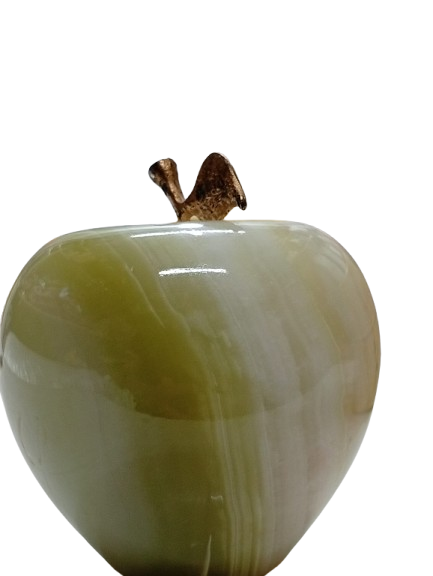 This elegant apple-shaped decor piece is crafted from premium onyx stone, featuring a smooth, glossy finish in soothing cream and amber tones. Topped with a gold-toned metal stem and detailed leaf, it adds a luxurious charm to any space. Perfect for home, office desks, or as a thoughtful gift. Its natural patterns make each piece uniquely beautiful.