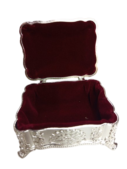 This elegant small silver box is a perfect blend of functionality and timeless design. Featuring finely embossed patterns and intricate craftsmanship, it showcases a classic vintage look that enhances any décor setting. The sturdy structure and secure lid make it ideal for storing jewelry, keepsakes, or other small essentials.