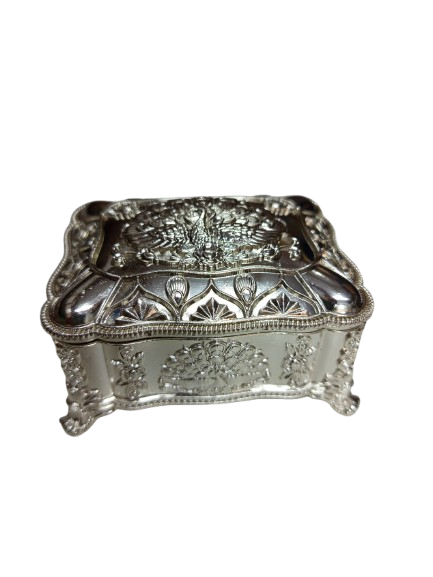 Its compact size makes it easy to place on dressing tables, side tables, or shelves, while the polished silver finish adds a luxurious shine. Whether used as a decorative piece or a practical storage solution, this box brings sophistication and charm to your home. It also makes a thoughtful gift for special occasions like weddings, birthdays, or anniversaries.