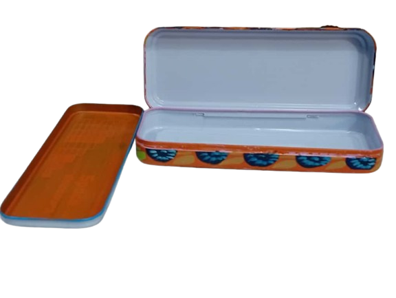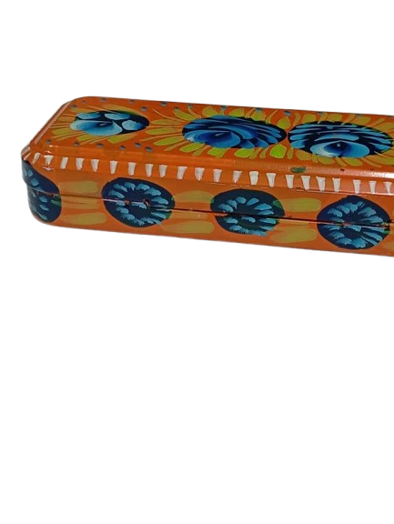 A beautifully hand painted pencil box featuring vibrant artwork . Perfect for storing pencils, pens, or small stationery items.