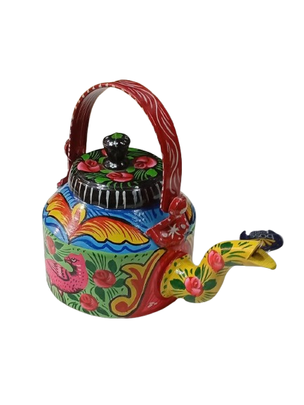 This handcrafted decorative kettle is a unique blend of traditional artistry and functional design. Carefully made with attention to detail, it showcases intricate hand-painted patterns that reflect cultural craftsmanship. The sturdy handle ensures easy handling, while the elegant spout adds to its authentic kettle form. Ideal as a decorative piece for your kitchen, dining area, or display shelf, this kettle brings a touch of heritage and artistic beauty into any setting. Whether used as a centerpiece or a collectible item, it stands out as a symbol of skilled craftsmanship and timeless design.