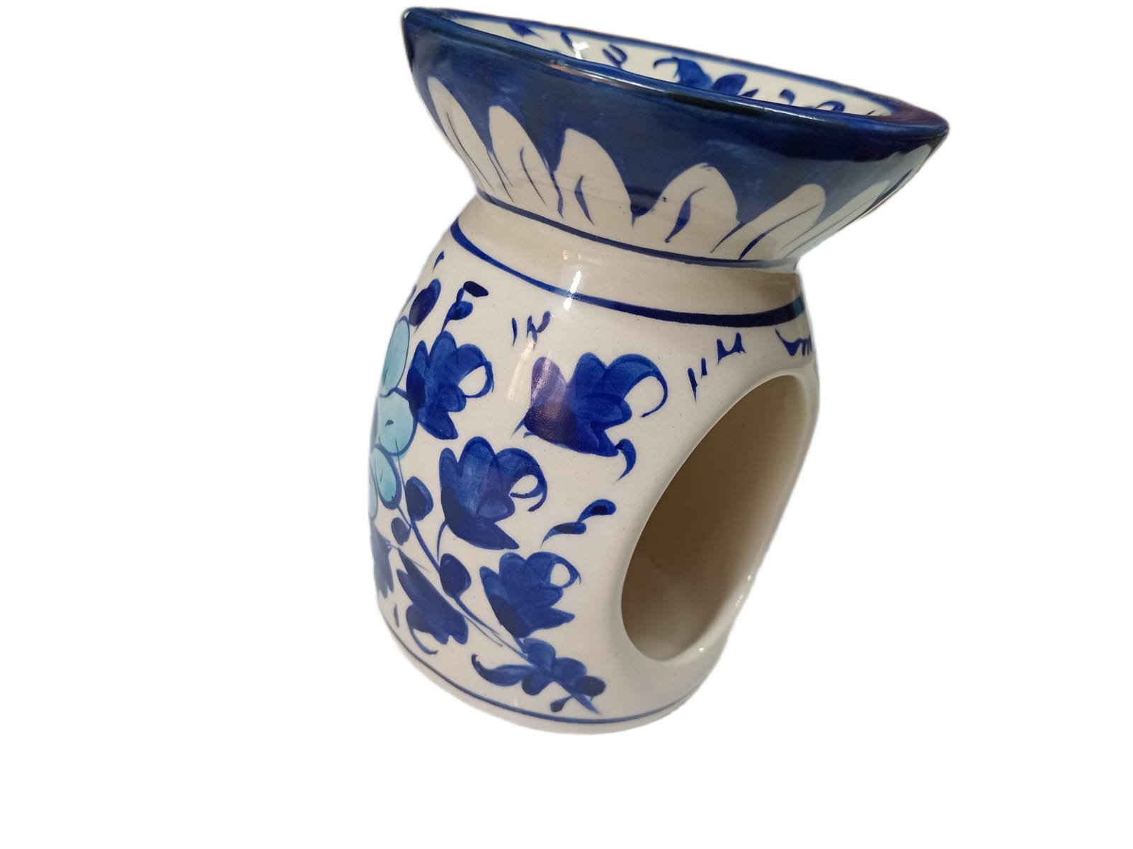 A beautifully handcrafted pottery candle holder featuring traditional patterns, perfect for adding a warm and elegant touch to any space.