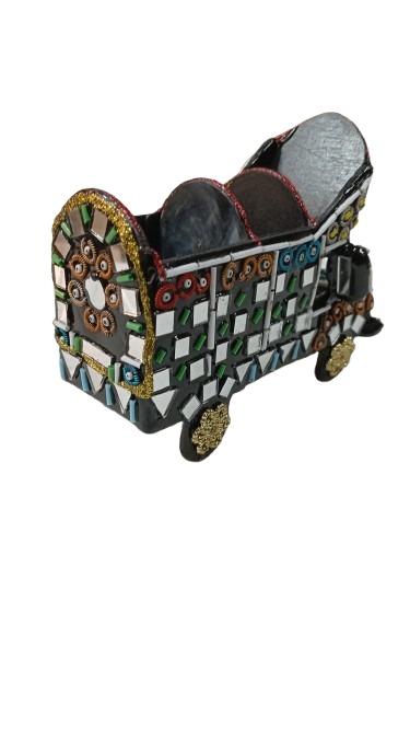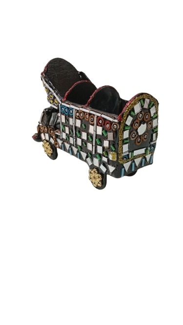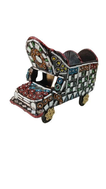mirror truck miniature is a beautifully crafted decorative piece inspired by classic truck art. Designed with fine detailing and embedded mirror accents, it showcases skilled craftsmanship and cultural artistry in a compact form. The structure includes realistic elements such as wheels, cabin design, and ornamental patterns, making it a standout addition to shelves, desks, or display units.