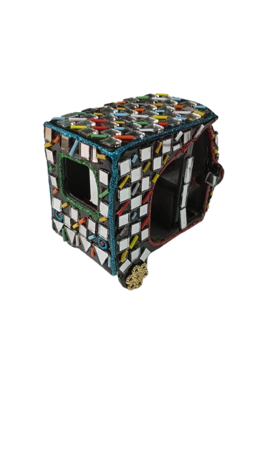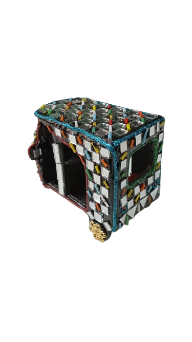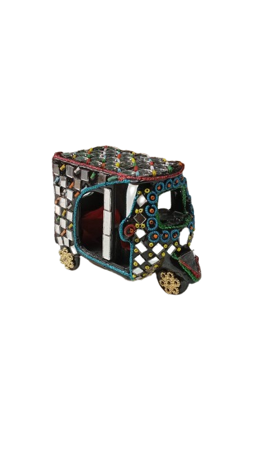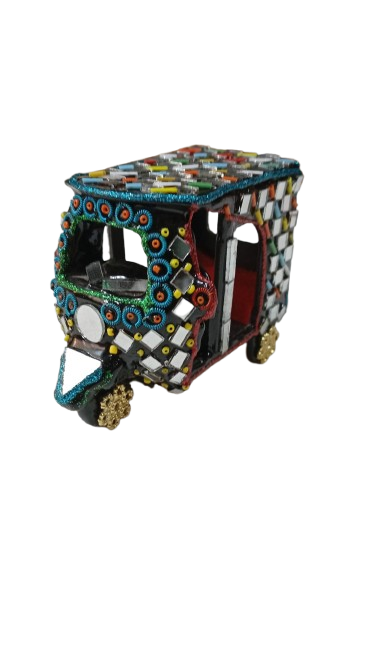 A beautifully handcrafted mirror rickshaw model inspired by traditional Pakistani truck art. Colorful, shiny, and perfect for home décor, gifts, or display.