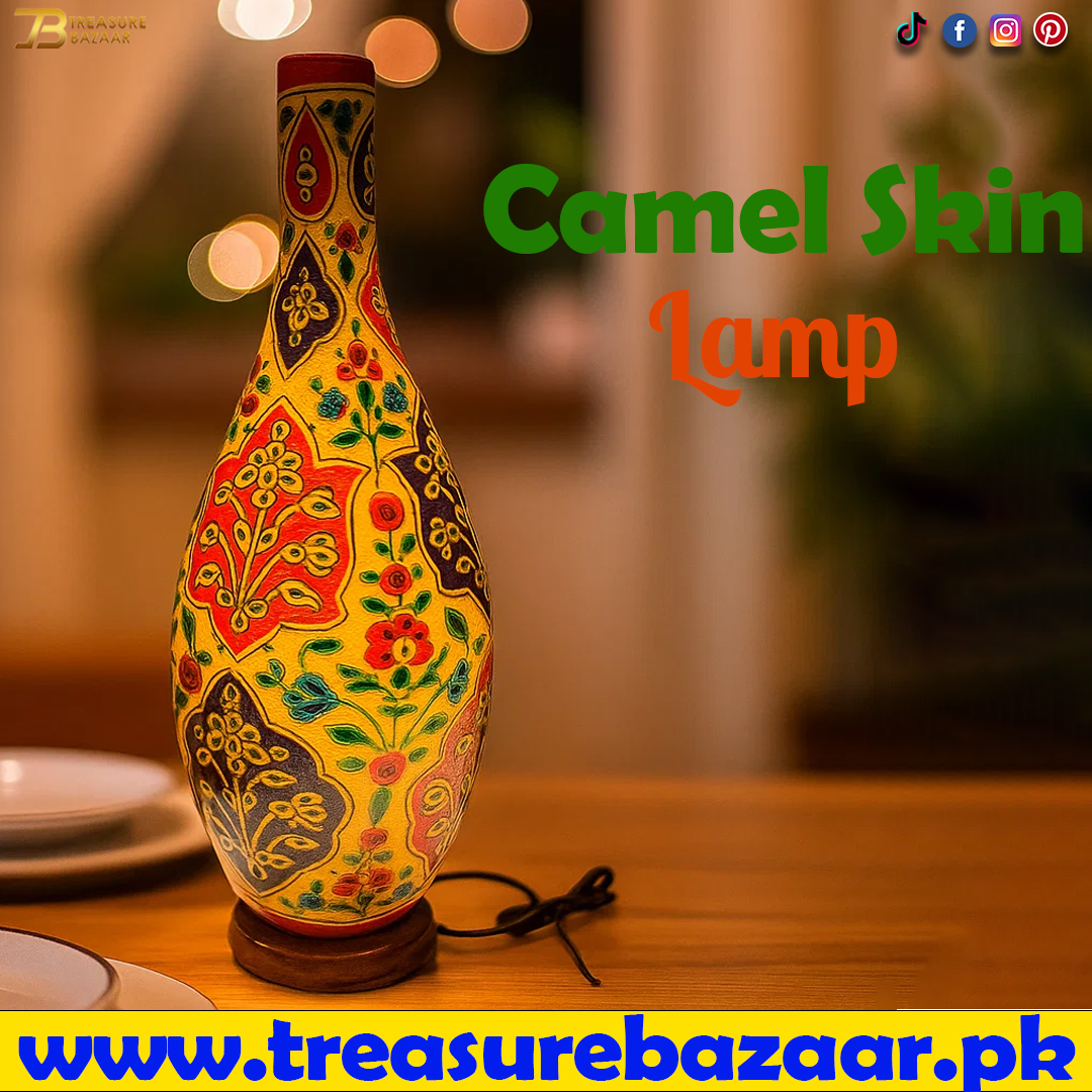 - The making of camel art product is a handwork that has been practiced in Multan for almost a millennium. There are families in the city who have been into this business for centuries and continue to this day. Camel skin products are made in Multan are renowned world-wide for the intricate hard handwork done on them by skilled artisans. It is one of the most famous and lucrative crafts of Multan. Camels can be found easily in areas near to Multan since Multan is located very close to the desert. The cholistan desert of Punjab is very close to Multan. Therefore, the main raw material can easily be found in Multan. Camel products are a small piece of desert crafted from dried camel skin in cholistan desert and the painted over to create a unique craft not found anywhere else. Light pierces through the porous camel skin to create shadow of the desert night. Making camel skin product is a long and delicate process that requires a lot of hard work. It is basically a combination of three different types of arts that join together to shape these show pieces. The artisans combine their talent and hard work to create. One is Clayman, second the Naqash ans third the Dabgar. Each of three work in unison to produce ornate camel skin products in Multan. The Kaman Gara area in Multan is the primary focal point of artworks where we can see numerous camel leather craft components in history of Pakistan that are quickly intrigued and acknowledged. It’s the creation of the famous craftsman Ustad Mohammed Abdullah Naksh. He was born in the artist’s city in 1898 and served his talent a lot and made Pakistan history in camel leather craft. He also taught tricks and techniques, transferred his talent to others and helped the art of living. overtime, people stopped using camel leather items regularly instead of using other items such as plastic or glass. From now on, camel skin craft are still relevant. they are used to manufacture elegant decorative items such as flower pots, lamps jewelry, boxes lamp shades, stationery boxes and vases. Camel skin products are the part of an art that is self-applauding and doesn’t need any words to explain because it speaks for itself. It is said to be the cultural heritage of our country as the making, designing and crafting everything is done by our very own Pakistani artisans and craftsmen. the inteicacy and delicacy with which they are being made is what makes them so precious. the technique of making camel skin product is referred to as Naqashi in the native language. the process of making these product is not an easy task at all and need so much specification. Pakistan crafts brings ultimate and exclusive variety of different products to decor your home or living home. Pakistan is rich in this art form and people from other countries also admire it. Travelers carried these things to our nation, which bolsters our way of life. There is a massive demand for camel leather product in Europe and Persian Gulf.
