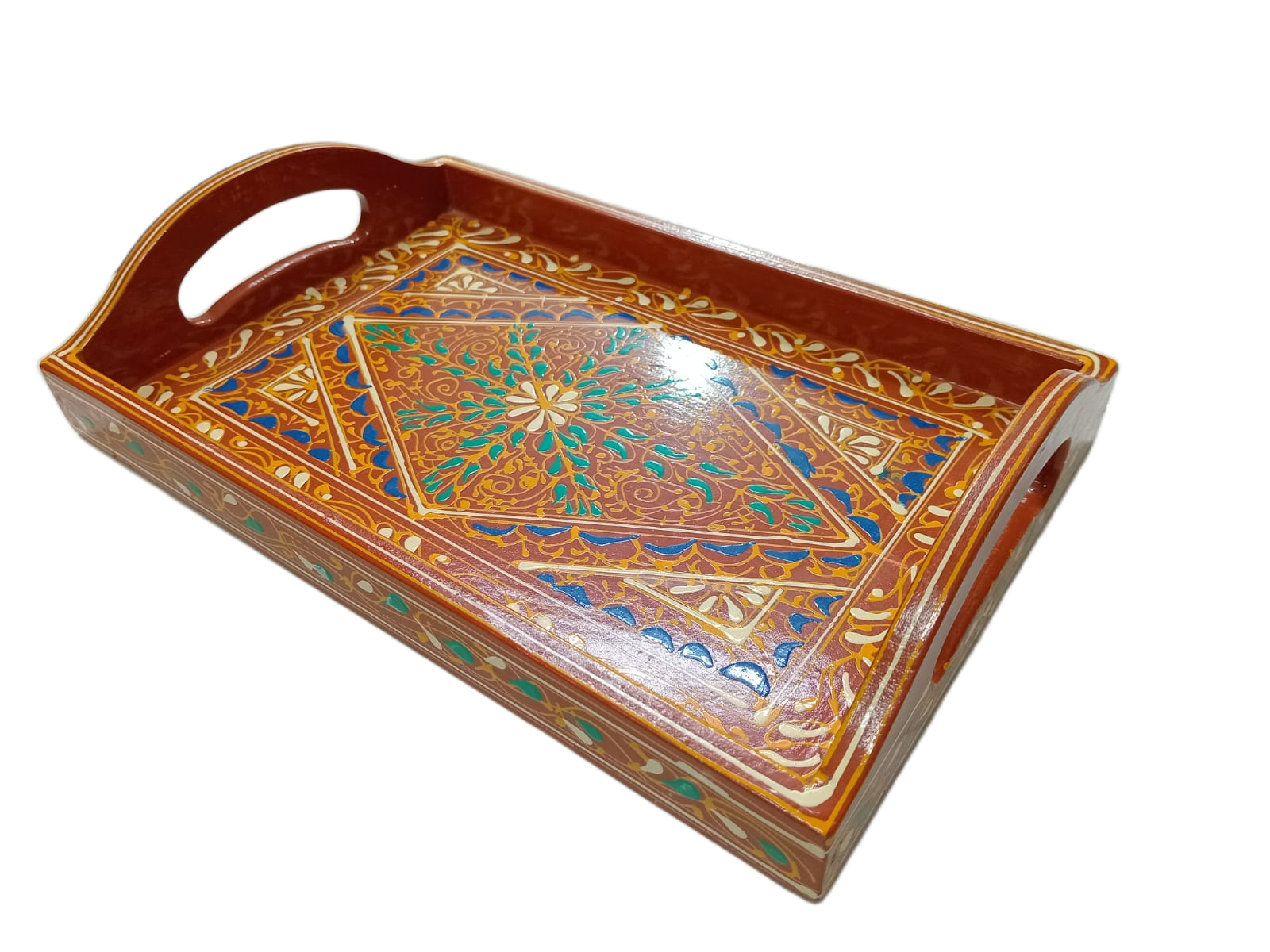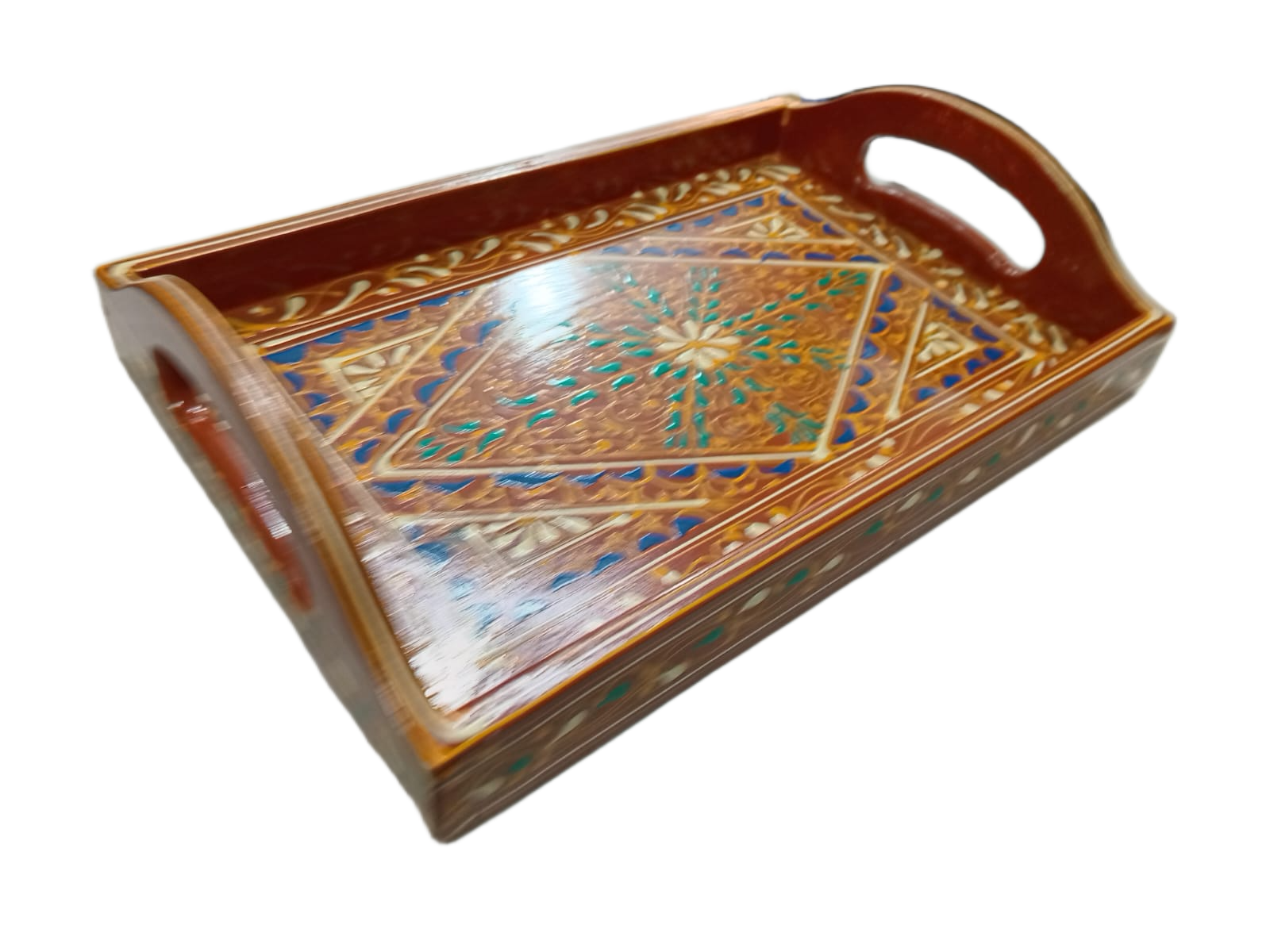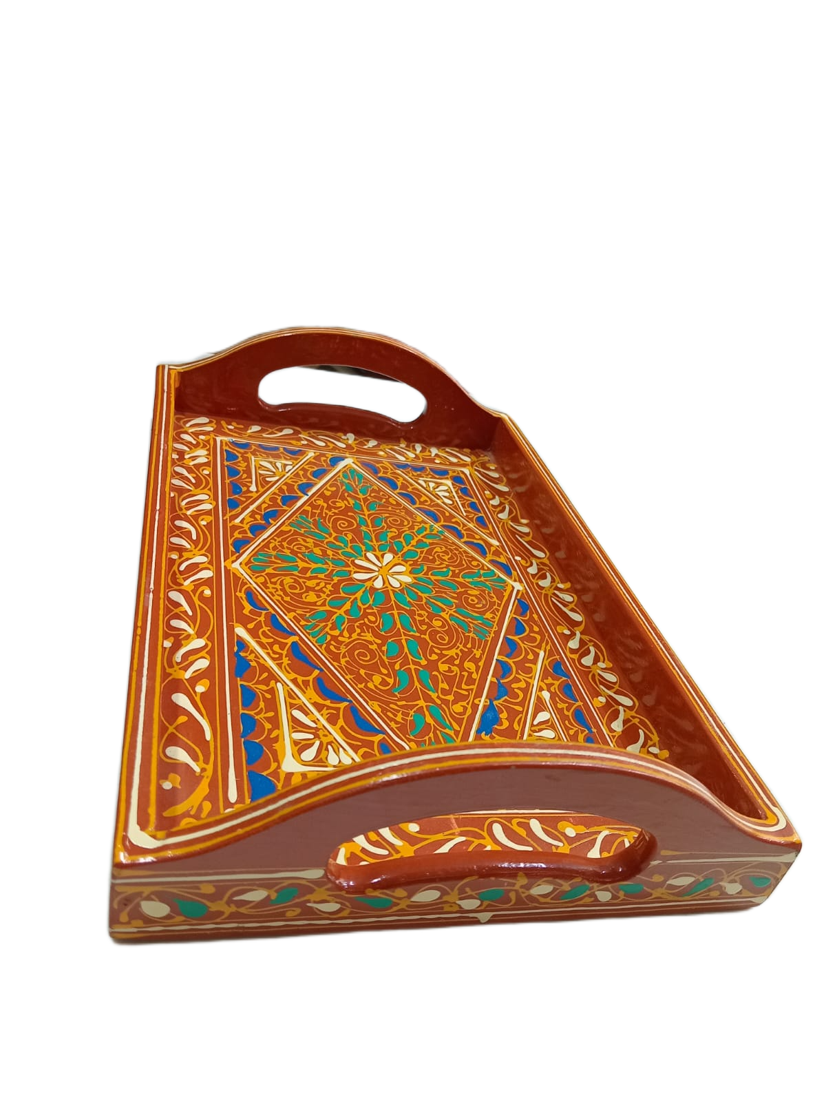 Designed for both everyday use and special occasions, this tray is ideal for serving tea, snacks, or presenting items in a stylish way. The sturdy build ensures durability, while the artistic design adds charm to your home décor. Whether placed on a table, used for hosting guests, or displayed as a statement piece, this tray effortlessly blends tradition with functionality.