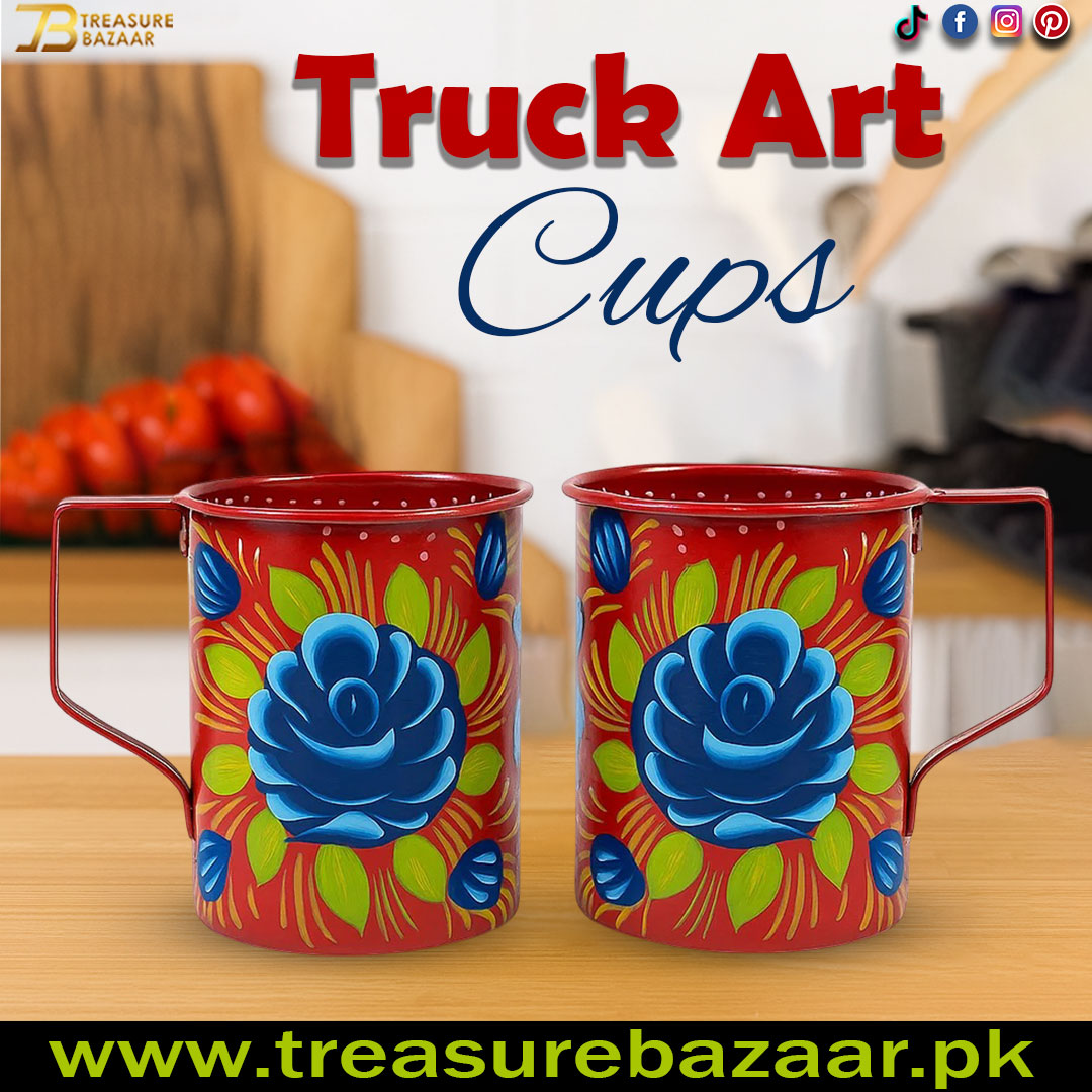 Hand painted Pakistani Truck art 2 Cups For Home Decor