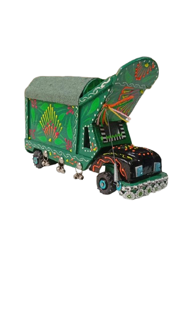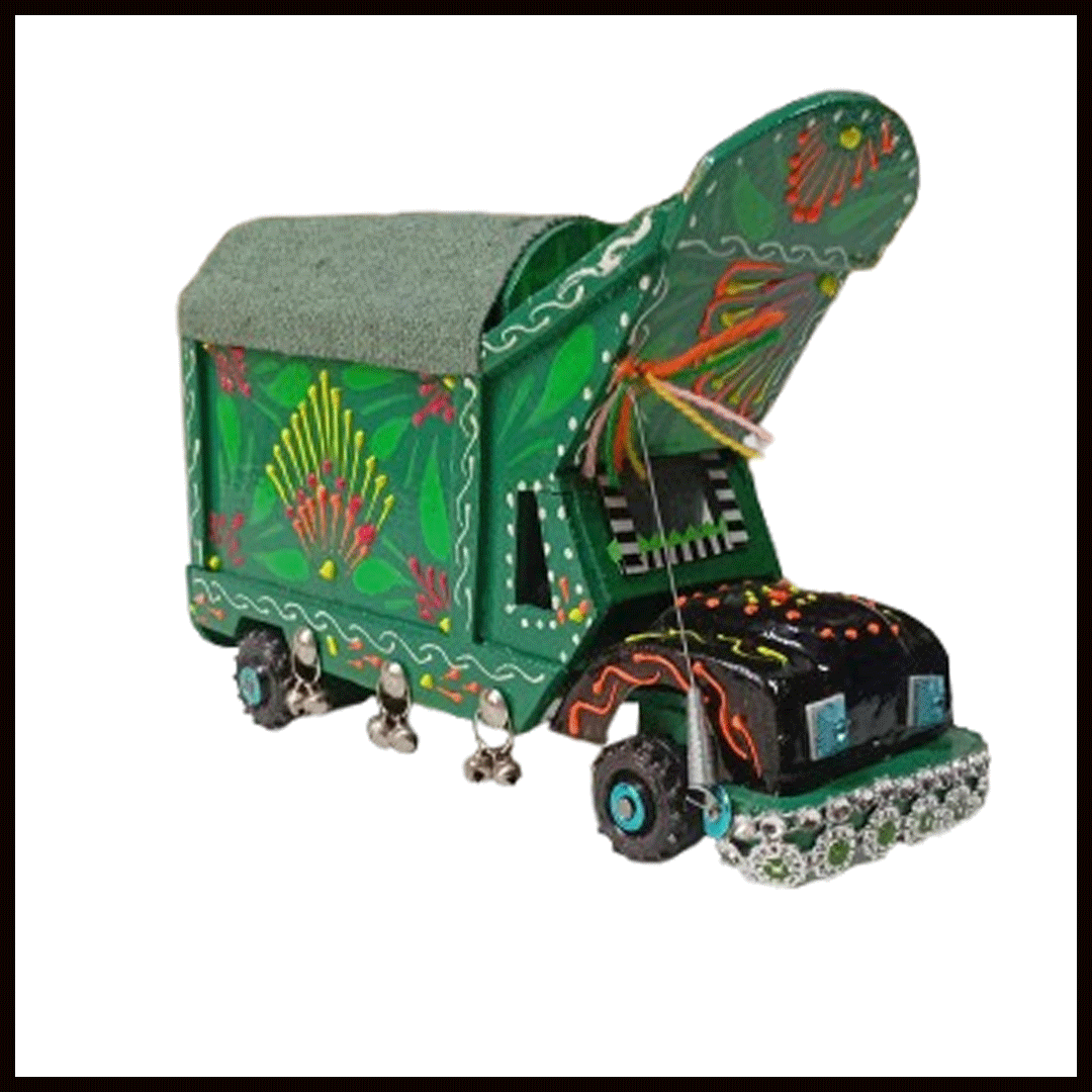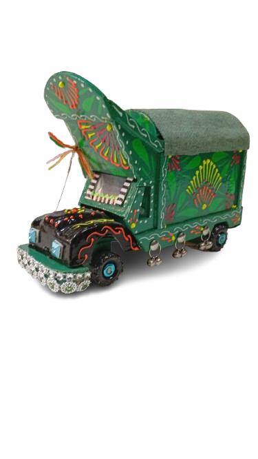 Pakistani Truck Art is famous in the world. This is a hand painted wooden truck. This wooden truck is made by hand and painted with oil paint. Easy to clean.Truck art is form of folk art in Pakistan. Truck art is now very popular fashion worldwide.