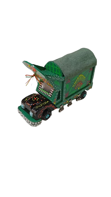 - This truck is made by hand and painted with oil paint. Easy to clean.