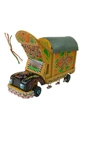 Pakistani Truck Art is famous in the world. This is a hand painted wooden truck. This wooden truck is made by hand and painted with oil paint. Easy to clean.Truck art is form of folk art in Pakistan. Truck art is now very popular fashion worldwide.