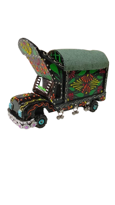 Pakistani Truck Art is famous in the world. This is a hand painted wooden truck. This wooden truck is made by hand and painted with oil paint. Easy to clean.Truck art is form of folk art in Pakistan. Truck art is now very popular fashion worldwide.